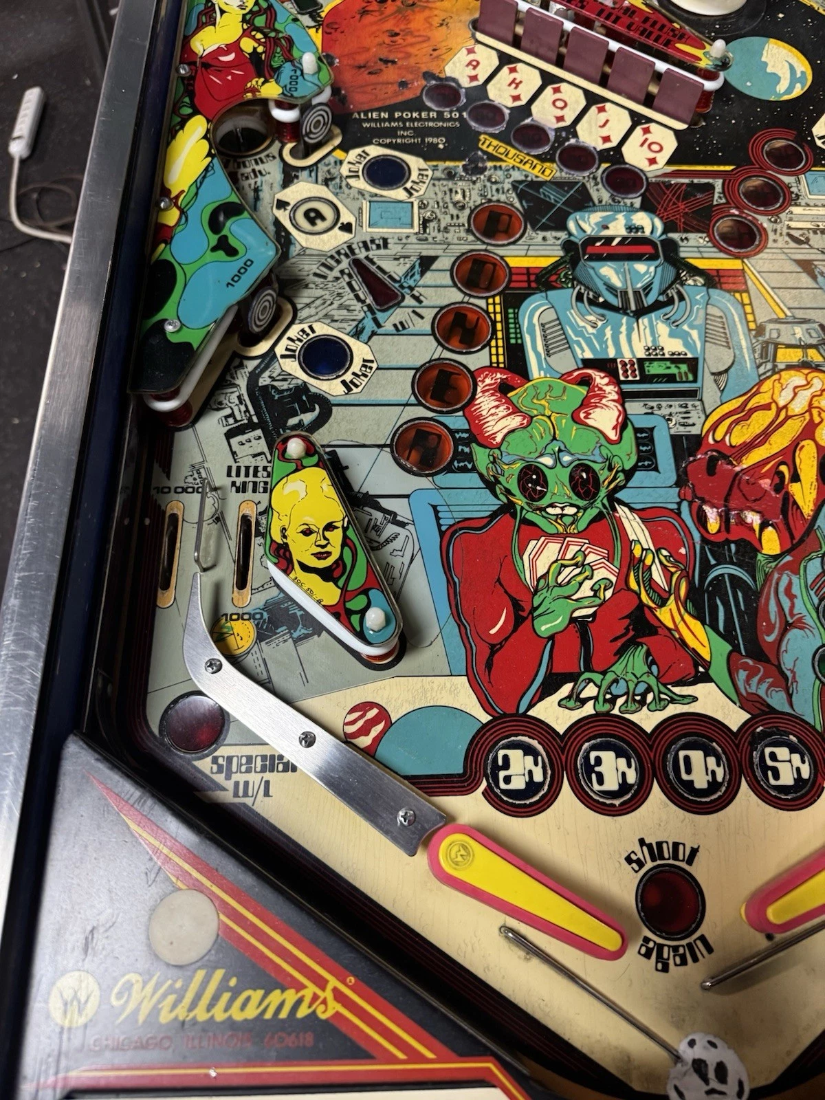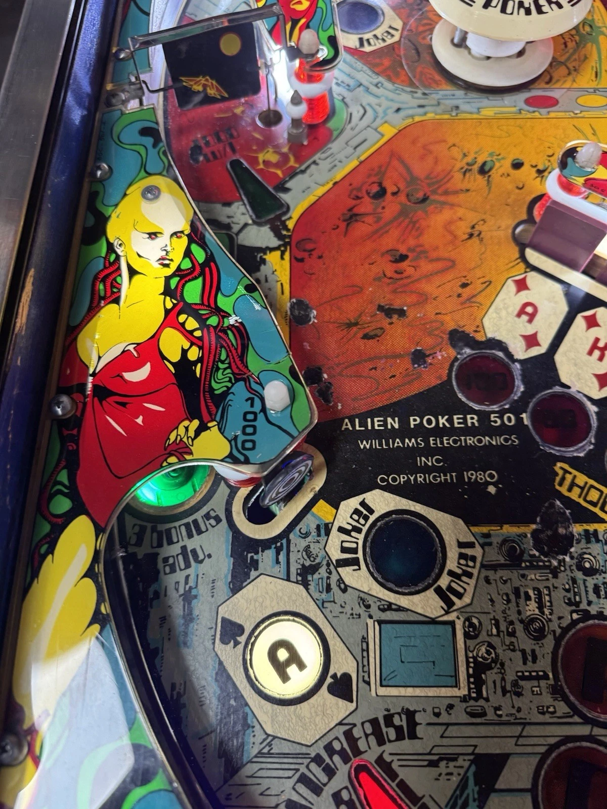 Alien Poker pinball machine 1980, Gottlieb Alien Poker pinball, vintage 1980 pinball machine, fully serviced Alien Poker, classic Gottlieb arcade machine, collectible Alien Poker pinball, retro sci-fi pinball, 1980 Gottlieb pinball, Alien Poker collector pinball, smooth gameplay pinball machine.