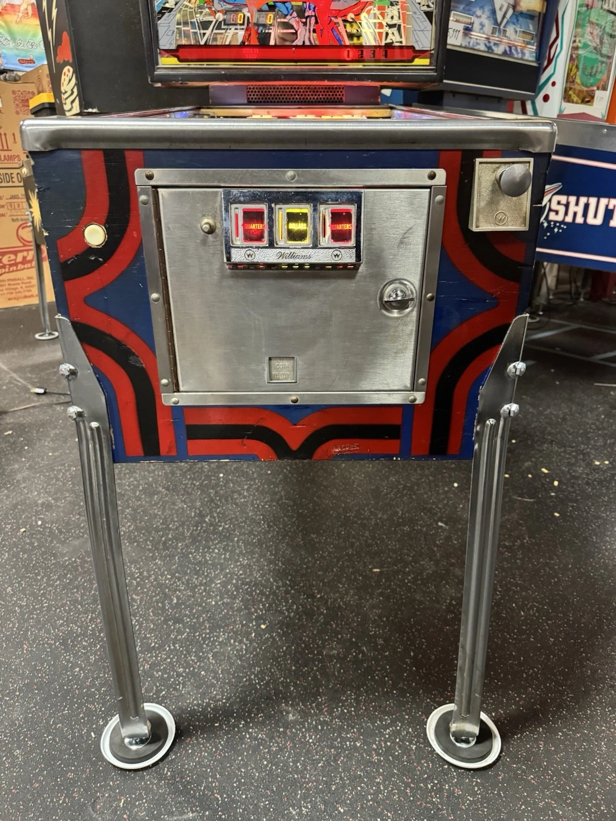 The combination of retro sci-fi artwork and interactive gameplay makes this machine an instant attention-grabber in any collection or arcade.