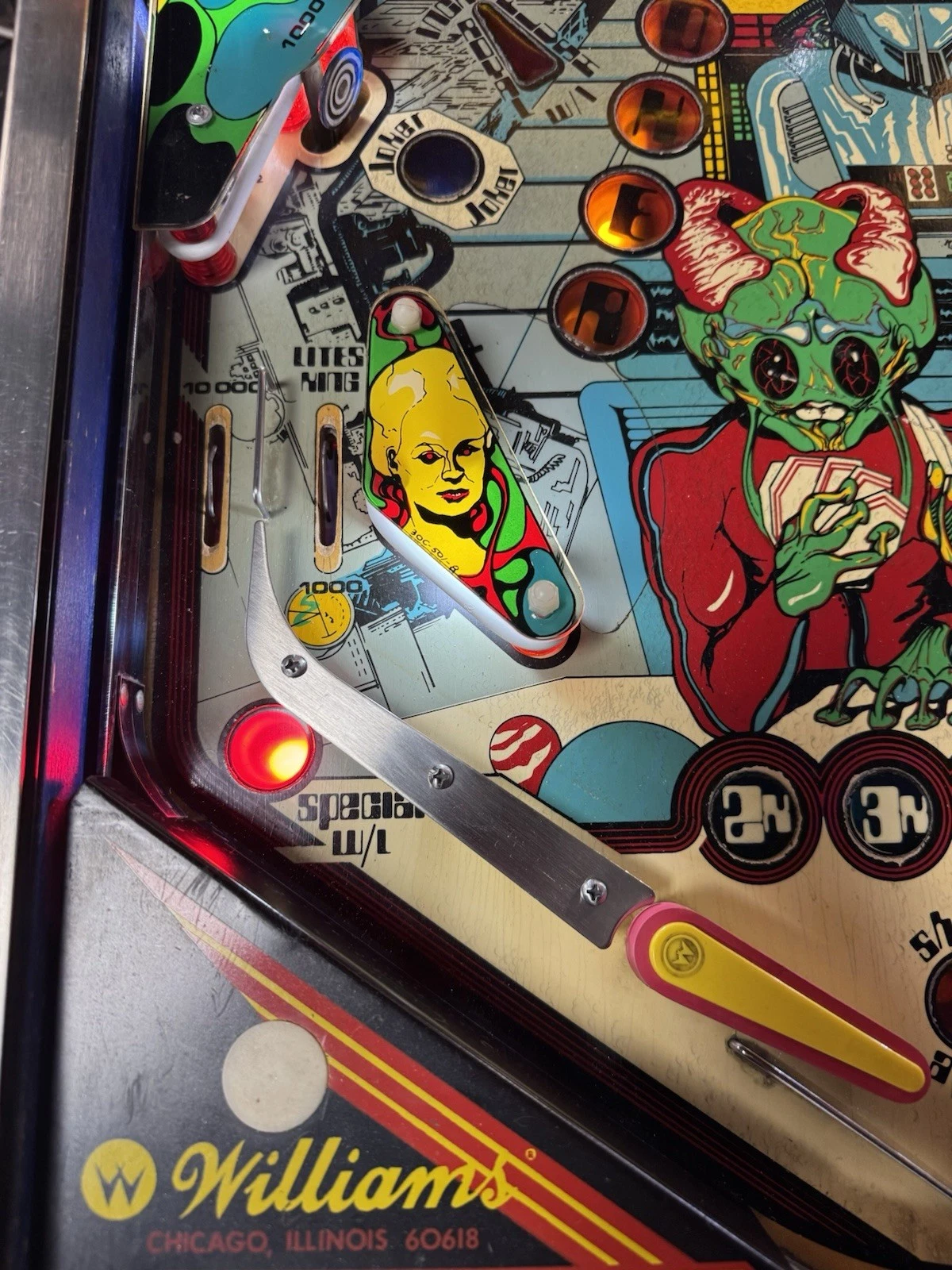 Even fully serviced, periodic care ensures the Alien Poker Pinball Machine continues to function flawlessly: